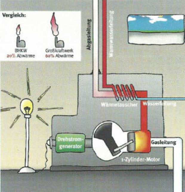 In Haus Noah erzeugt ein Blockheizkraftwerk (BHKW) gleichzeitig Strom und Wärme.