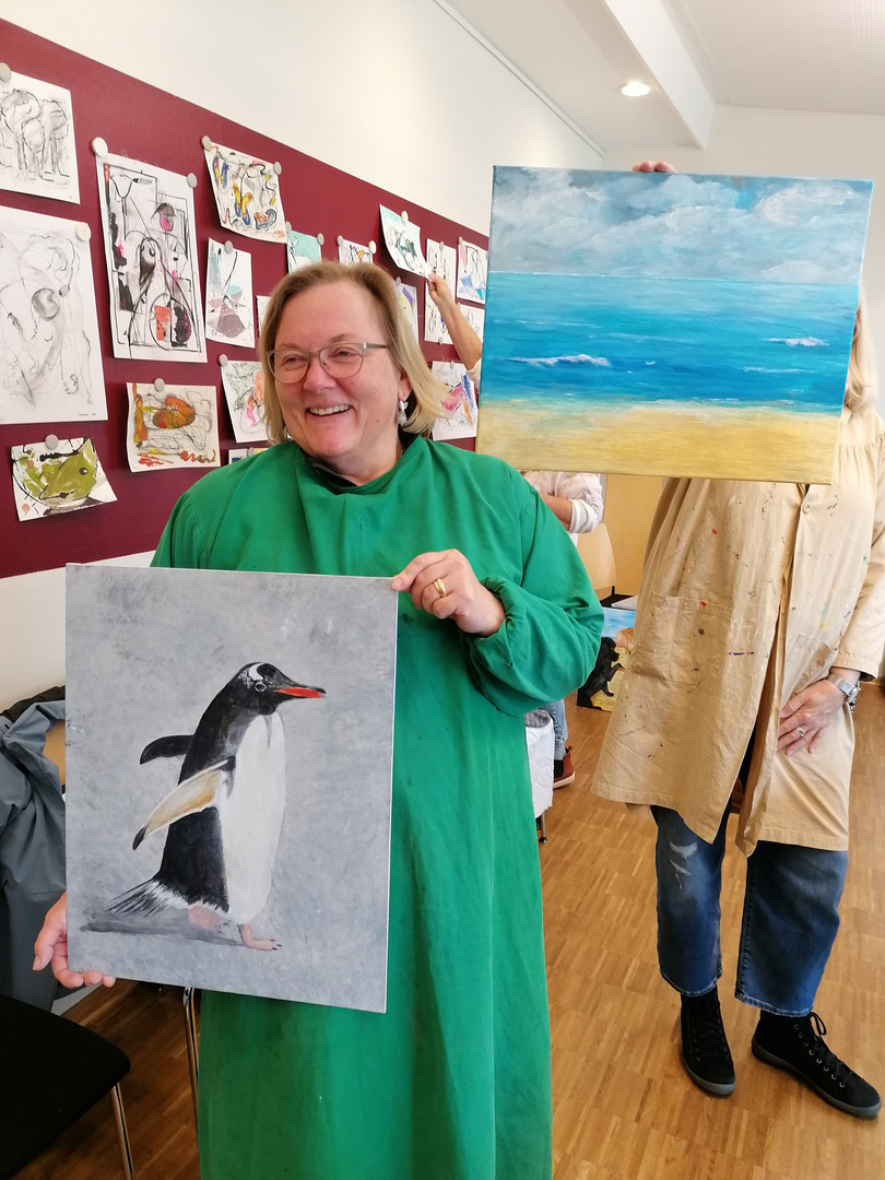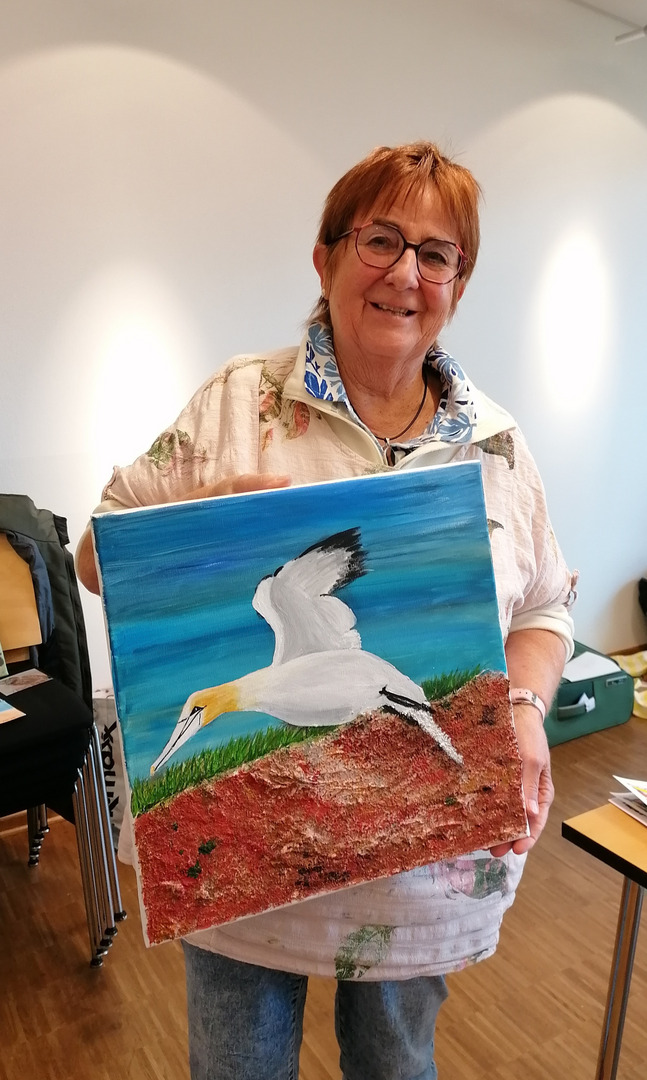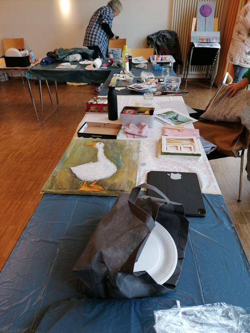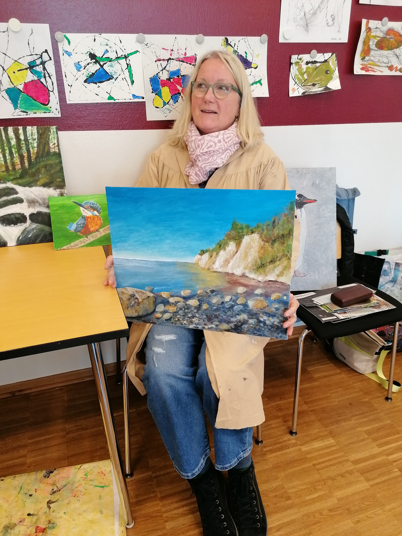 Hierbei entstanden unter der Leitung der Warendorfer Malerin Karina Kremers-Jeggle wunderschöne Kunstwerke verschiedener Stilrichtungen. Die Gruppe hatte sichtlich viel Spaß und sprühte vor Ideen, die in zahlreichen Werken zum Ausdruck kamen. Wir durften einen Einblick in diese Werke haben, vielen Dank dafür.