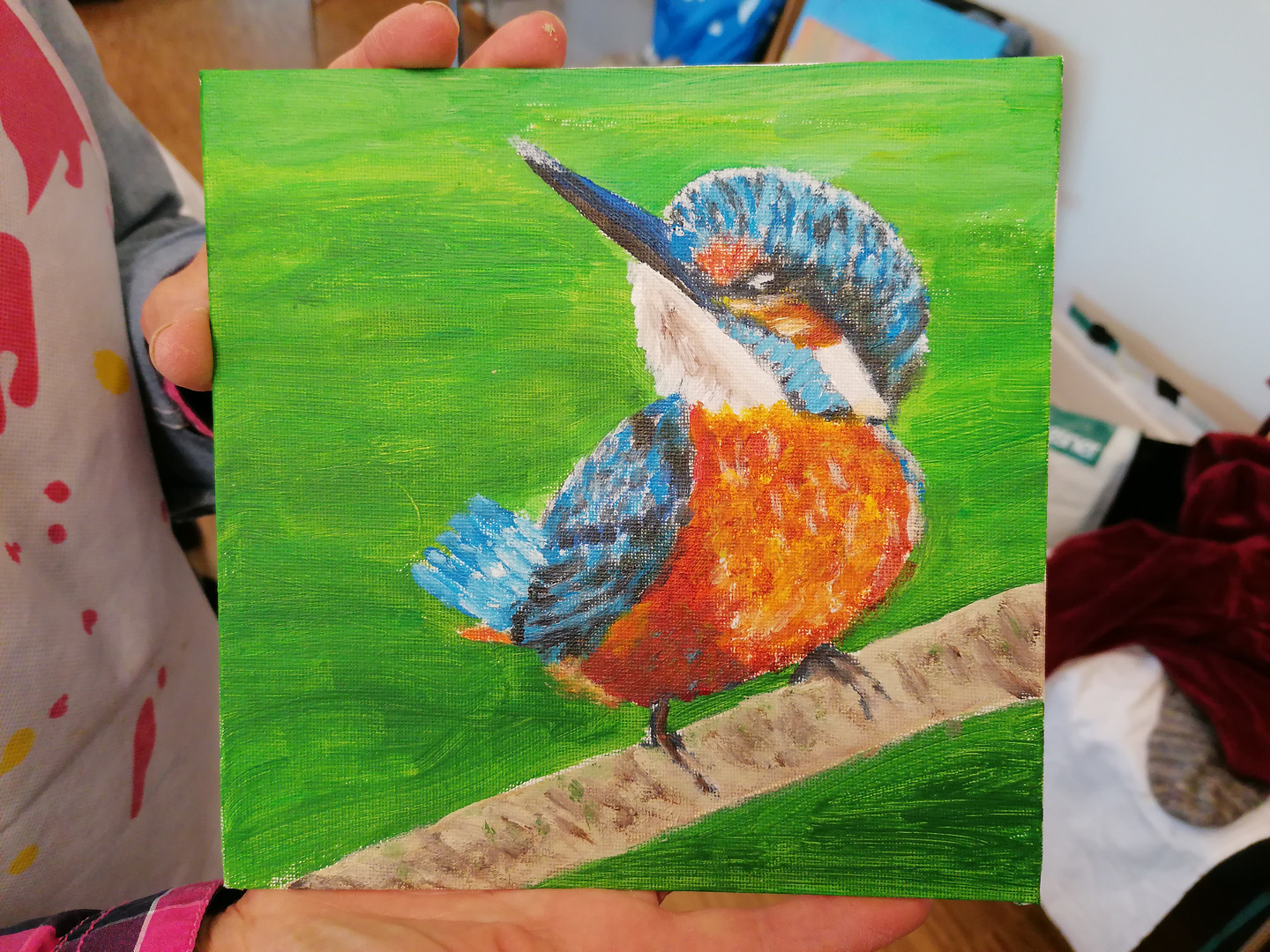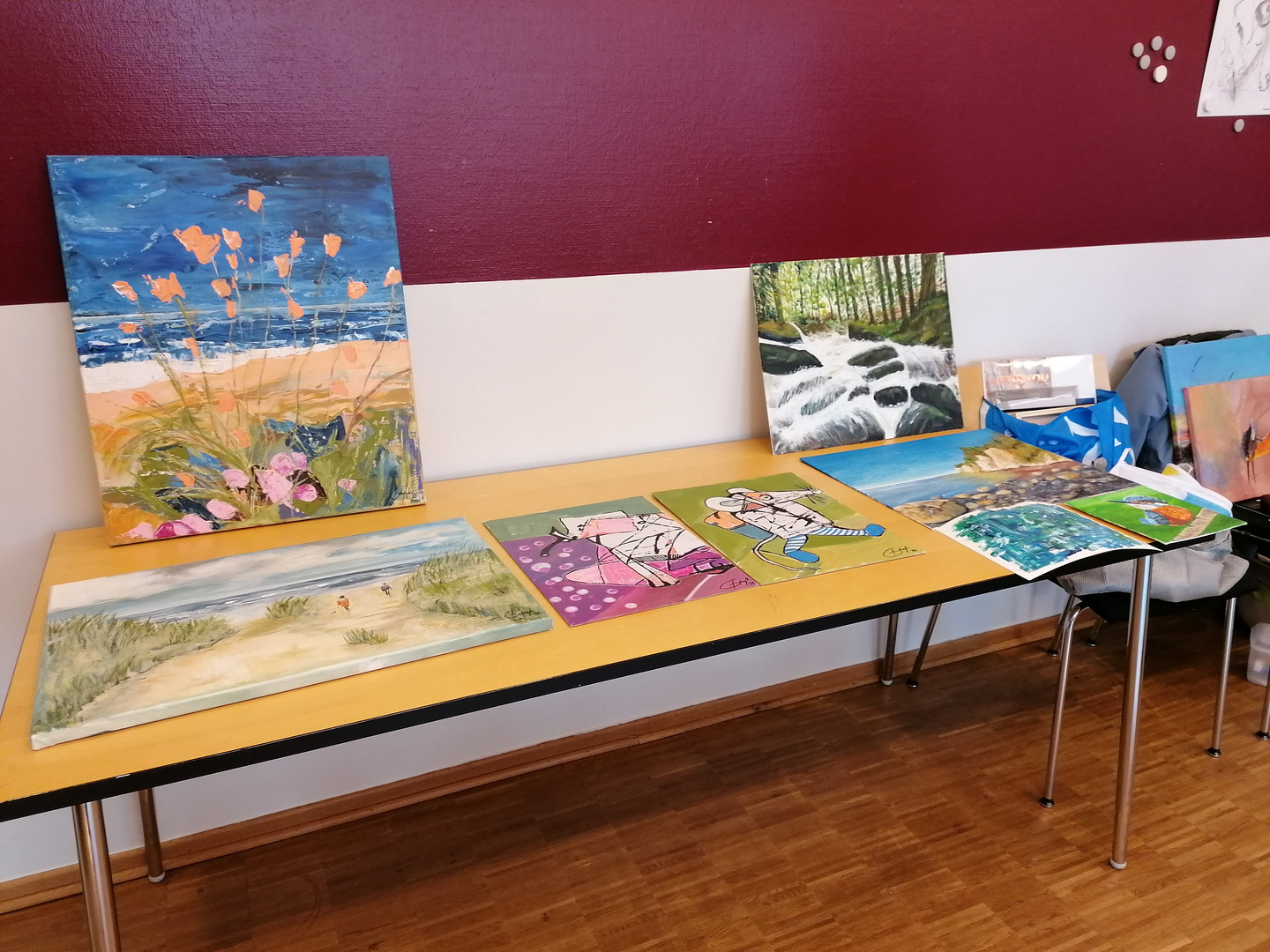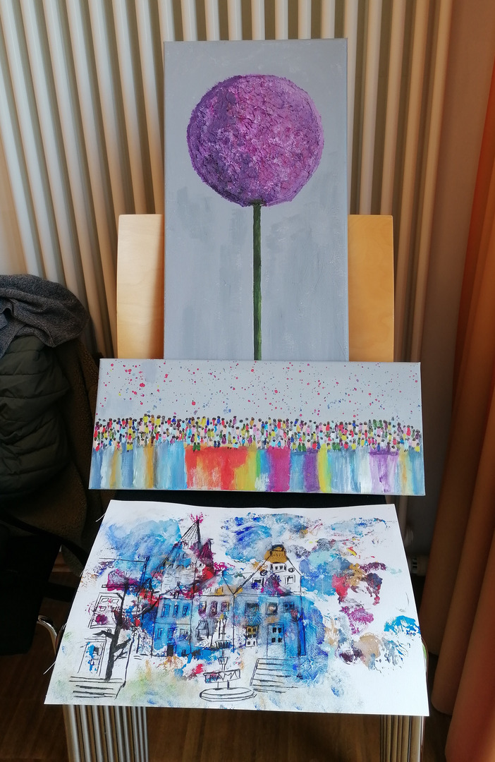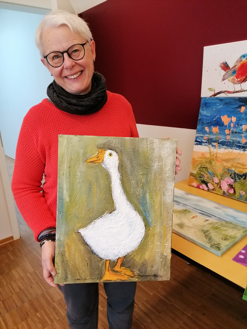Hierbei entstanden unter der Leitung der Warendorfer Malerin Karina Kremers-Jeggle wunderschöne Kunstwerke verschiedener Stilrichtungen. Die Gruppe hatte sichtlich viel Spaß und sprühte vor Ideen, die in zahlreichen Werken zum Ausdruck kamen. Wir durften einen Einblick in diese Werke haben, vielen Dank dafür.
