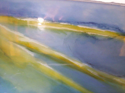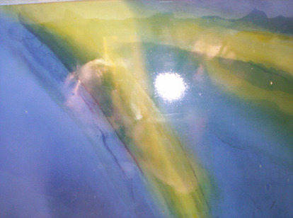 Die Kunstverglasung nimmt diese Elemente auf: Dunkelheit im oberen Bereich, so wie diese damals über das Land kam, darunter grelle Lichtblitze, denn die Menschen, die bei der Kreuzigung dabei waren, erschraken angesichts der Ereignisse. Im unteren Bereich liegen grüne Felder als Zeichen der Hoffnung.