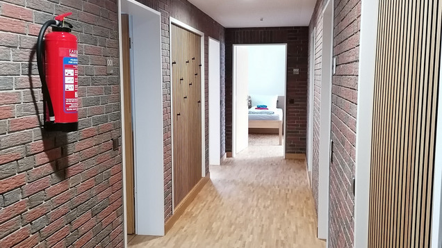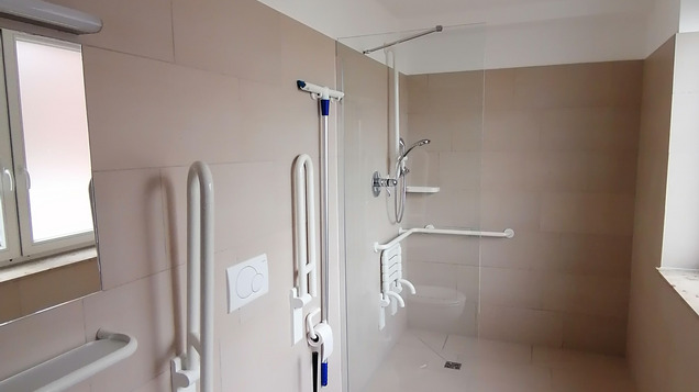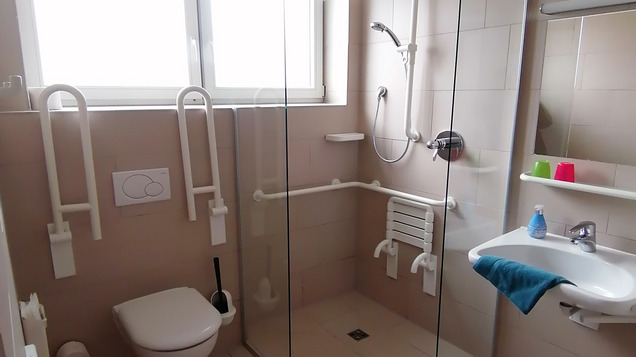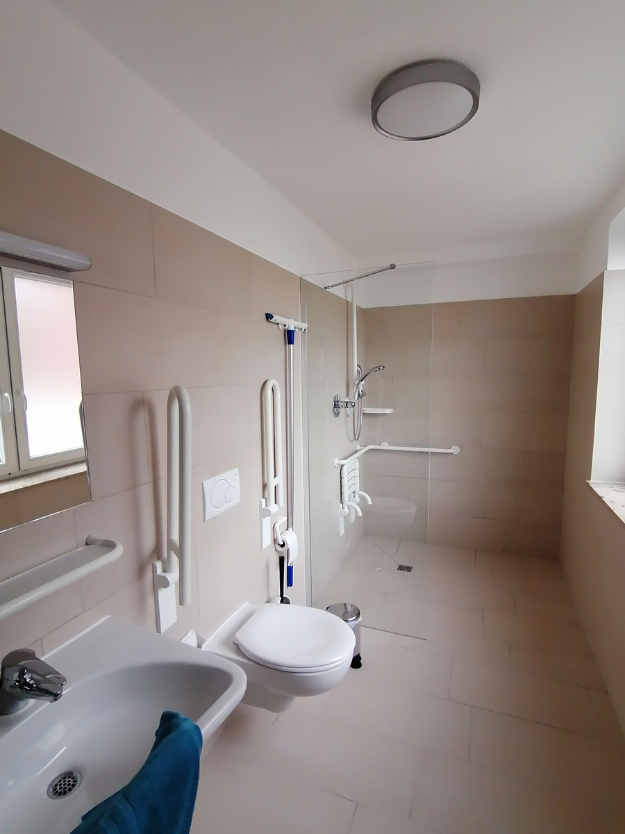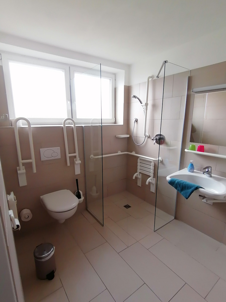 Im Erdgeschoss sind alle 7 Zimmer behindertengerecht. Jedes Zimmer verfügt über eine barrierefreie Nasszelle.