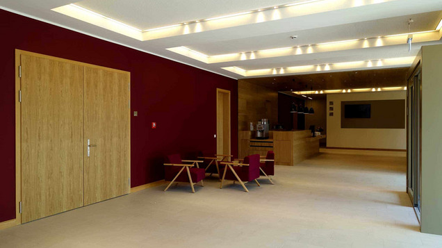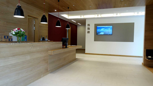 Das einladende Foyer im Ergeschoss von Haus Mirjam zeichnet sich durch einen großzügigen Empfangs- und Rezeptionsbereich aus.