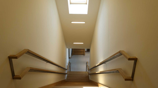 Ein Fahrstuhl oder eine Treppe führen ins Obergeschoss.