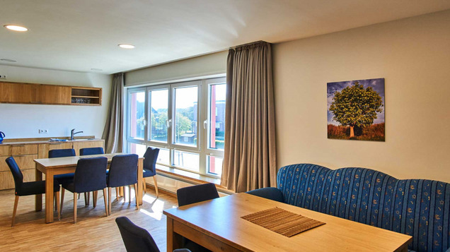 Außerdem befindet sich auf jeder Ebene ein gemütlicher Aufenthaltsraum, das Obergeschoss verfügt über einen Kamin.