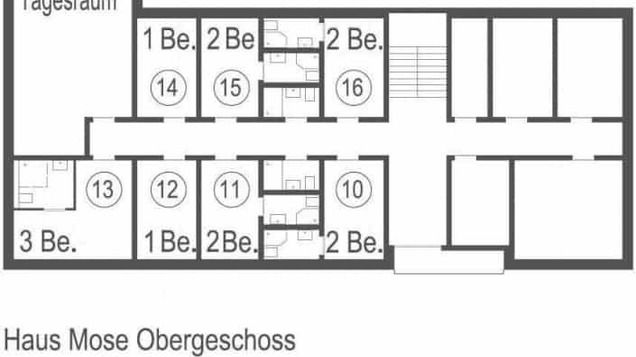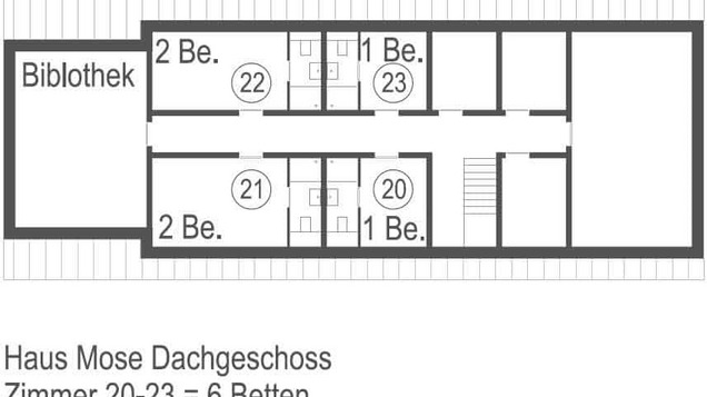 32 Betten in 18 Zimmern mit eigener Nasszelle, verteilt auf 3 Etagen, erwarten Sie in Haus Mose.