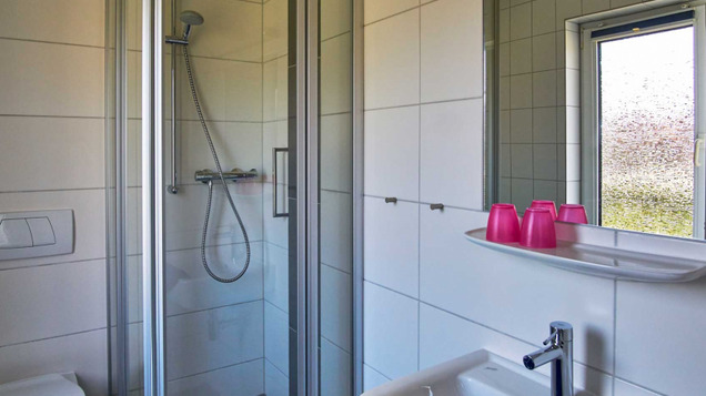 Einzelzimmer im Erdgeschoss und Obergeschoss haben die Bäder zur Alleinbenutzung über den Flur
