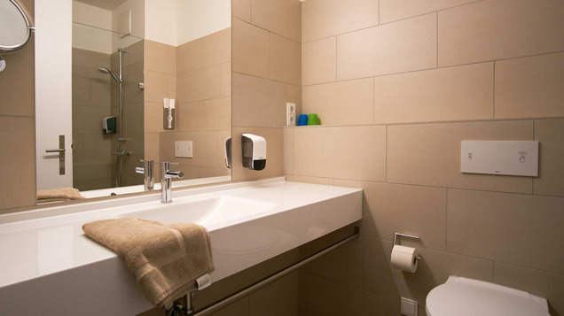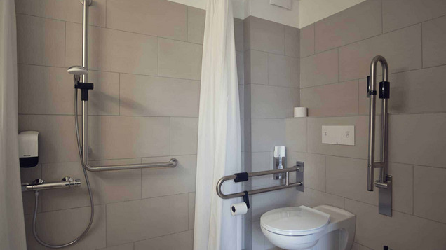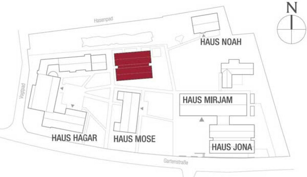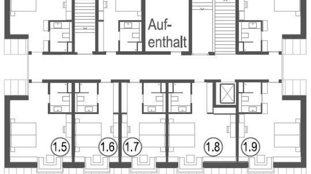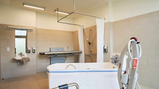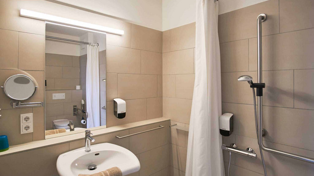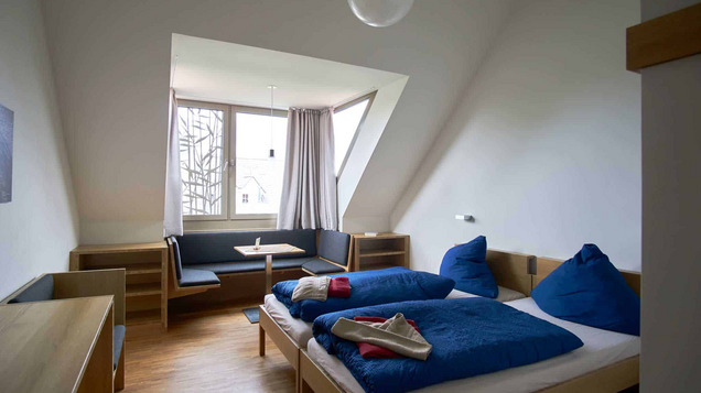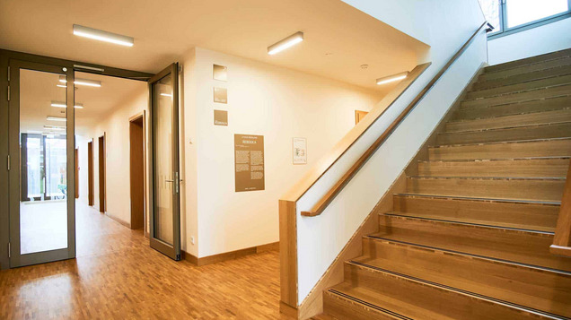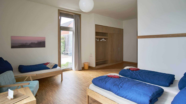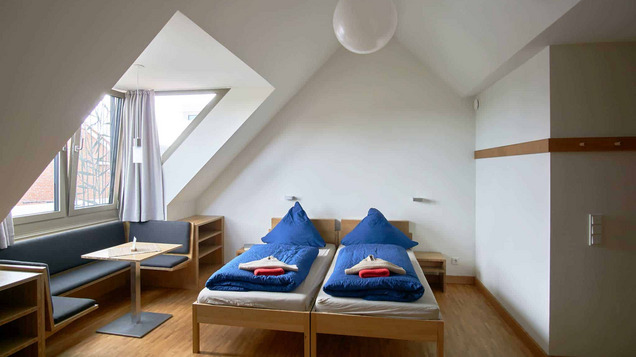 Auf zwei Ebenen befinden sich 13 barrierefreie Doppel- und zwei Dreibettzimmer mit eigener Nasszelle, die z.T. behindertengerecht sind.